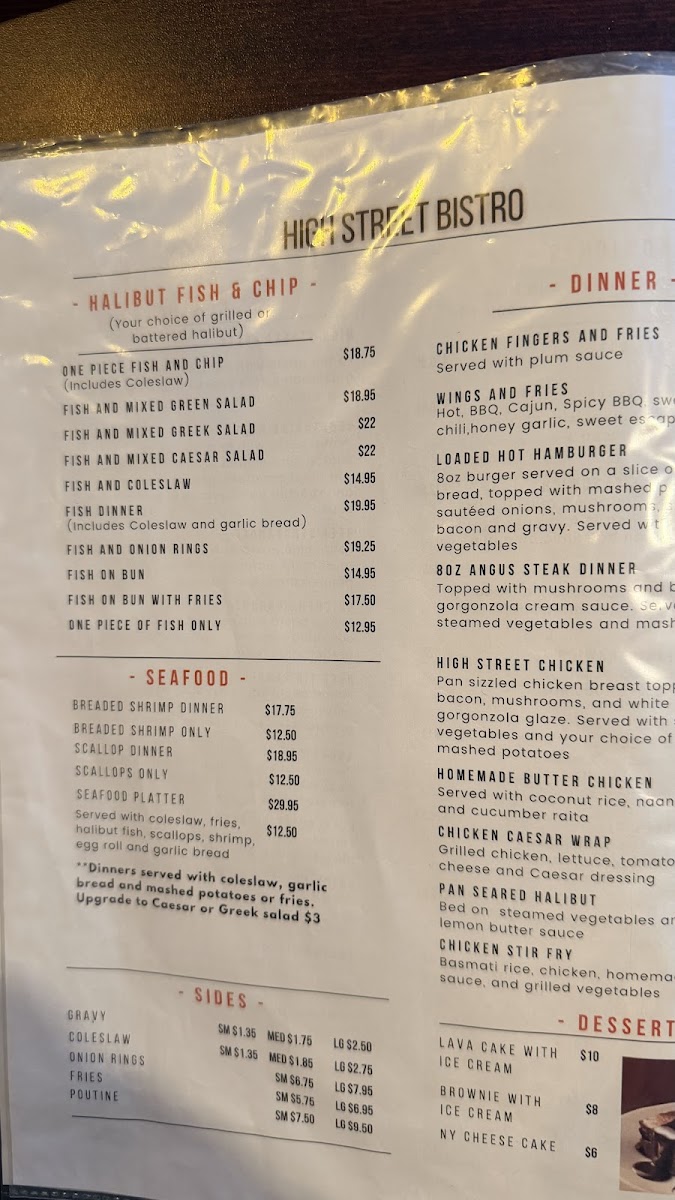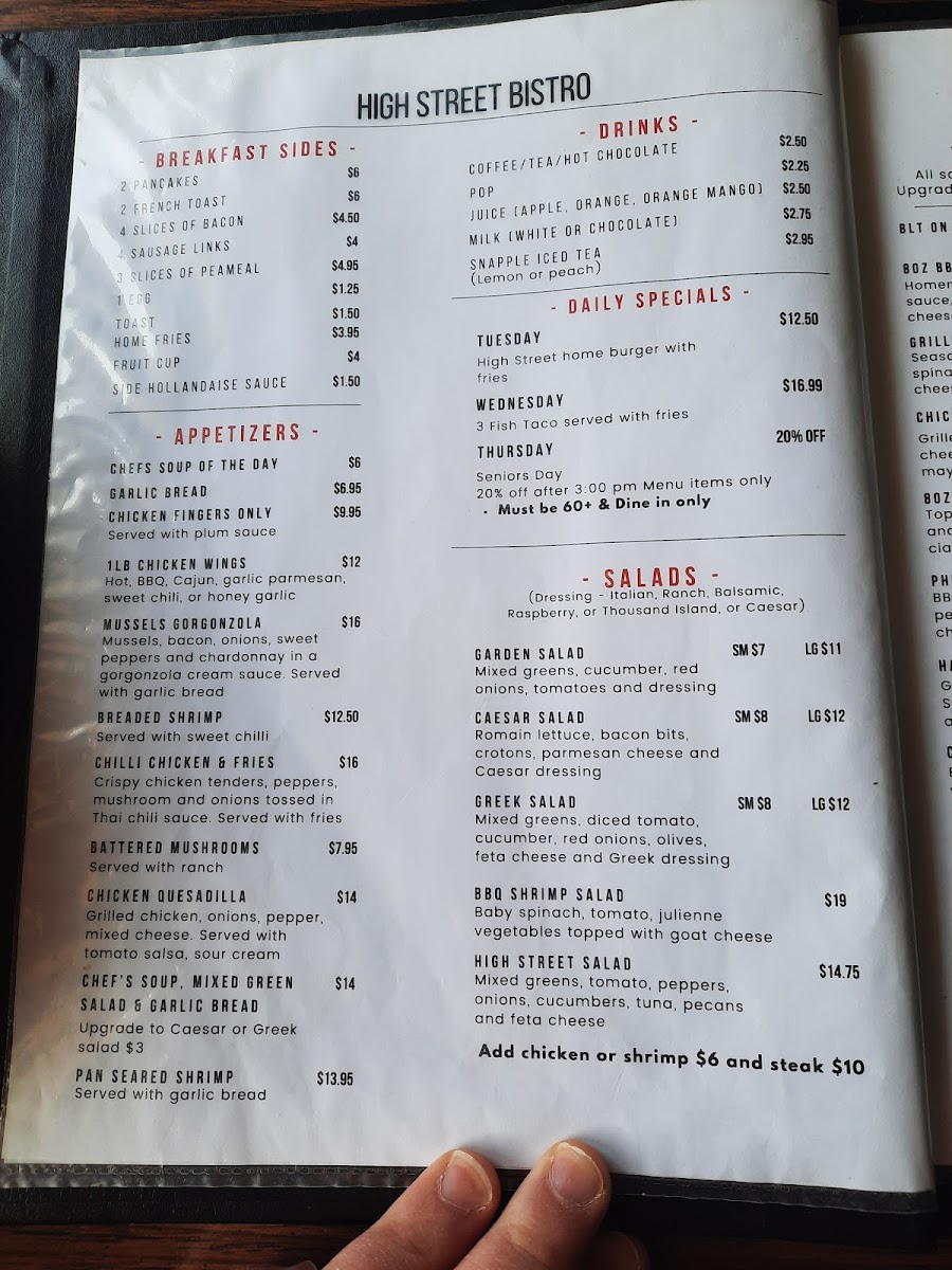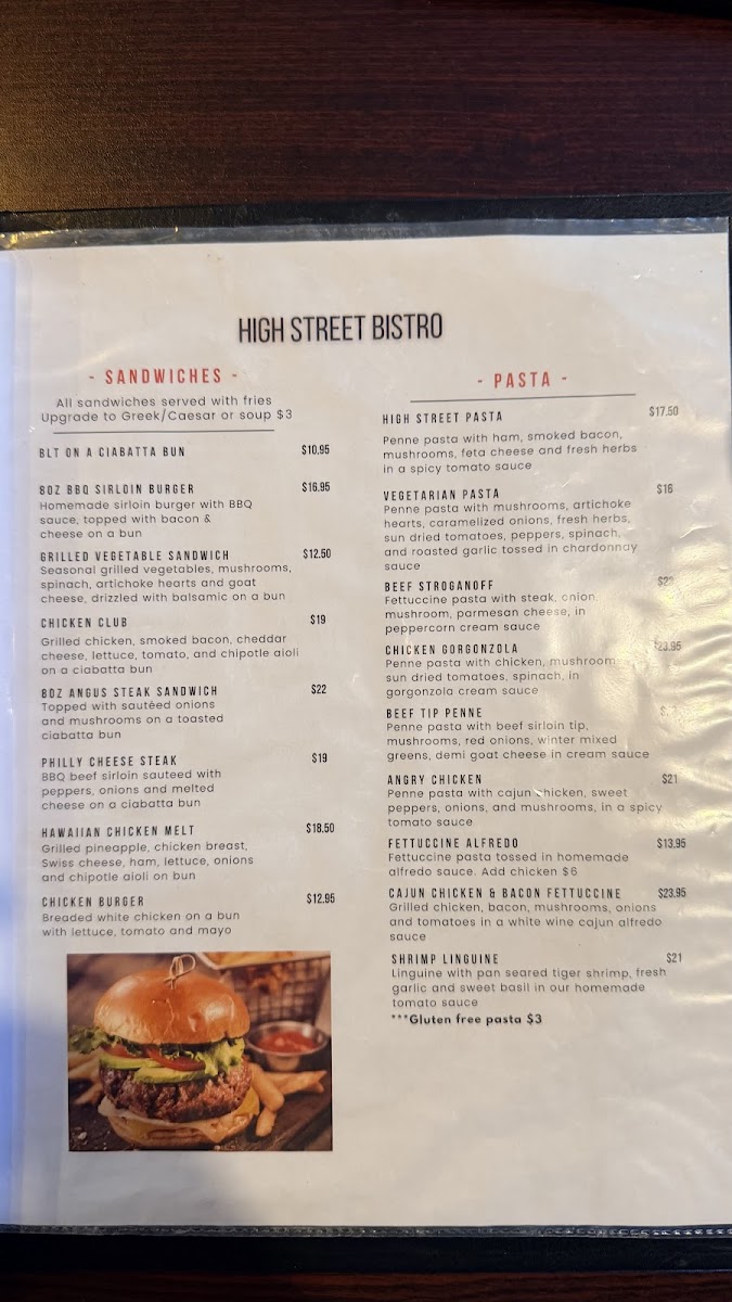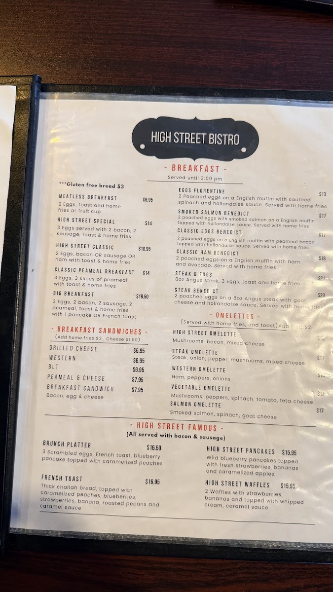 High Street Bistro Menu